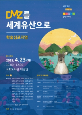 [충청뉴스큐] 경기도가 오는 23일 비무장지대의 세계유산적 가치를 조명하기 위해 ‘비무장지대를 세계유산으로’를 주제로 국회도서관에서 학술심포지엄을 개최한다.