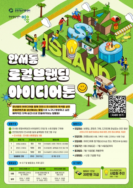 [충청뉴스큐] 천안시는 천안청년센터 이음이 오는 14일까지 ‘안서동 로컬 브랜딩 아이디어톤’ 참여자를 모집한다고 밝혔다.