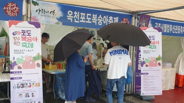 축제장 방문객을 대상으로 복숭아 시식, 포도·복숭아 막걸리 시음 행사와 함께 축제 세부 일정이 담긴 전단을 배포하며 다음 달 개최되는 포도·복숭아 축제 홍보에 박차를 가했다.
