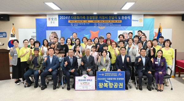 [충청뉴스큐] 홍성군은 8일 홍성조양로타리클럽 사무실에서 다문화가족 친정 보내주기 사업에 선정된 8가구 29명에 대한 환송식을 개최했다.