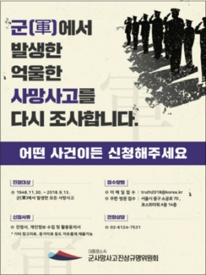 ‘대통령소속 군사망사고진상규명위원회’는 지난해 9월 특별법에 따라 설립되었으며, 군대에서 발생한 억울한 사망사고에 대해 유족분들과 목격자 등의 진정을 받아 공정하고 객관적인 조사로 진실을 규명하는 업무를 수행한다.