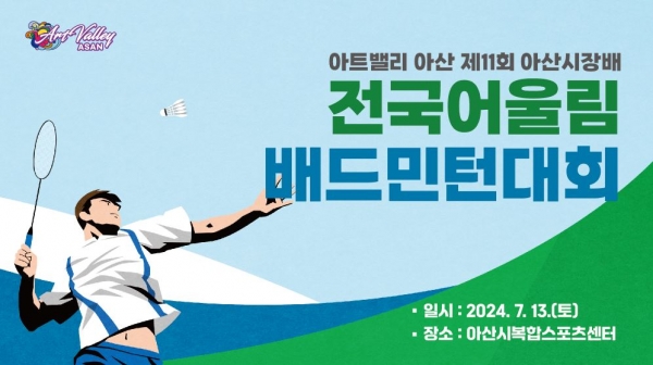 [충청뉴스큐] 아산시 장애인체육회는 ‘아트밸리 아산 제11회 아산시장배 전국 어울림배드민턴대회’가 오는 13일 아산시복합스포츠센터에서 개최될 예정이라 밝혔다.