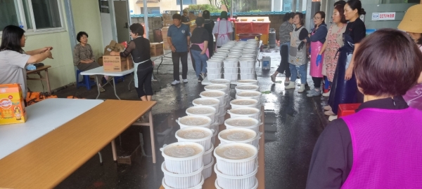 이번 나눔은 9년째 매년 추진하고 있는 협의체 특화사업으로 위원과 생활지원사 40여명이 간편하게 데워 먹을 수 있는 삼계탕 밀키트와 직접 담은 나박김치를 대상 가구에 전달하고 안부를 확인했다.