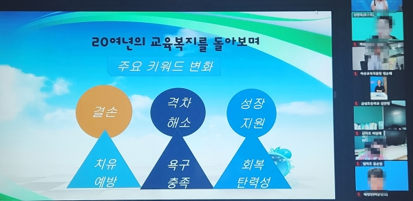 [충청뉴스큐] 아산교육지원청 교육복지지원센터는 교육복지안전망사업구축 사업으로 관내 교육복지안전망 담당교사 및 징검다리교실 운영 교사 80여명을 대상으로 역량 강화 연수를 ‘공감하고 소통하라’주제로 비대면 실시간 진행했다.