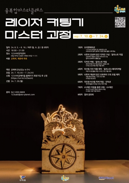 [충청뉴스큐] 부여군의 123사비창작센터에서는 디지털 장비를 활용해 창작 능력을 향상하기 위한 ‘레이저커터 마스터 과정’ 교육생을 오는 24일까지 모집한다.