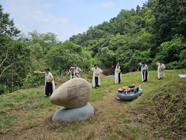 [충청뉴스큐] 홍성군은 이애주문화재단이 지난 15일 한국 전통춤의 대가 한성준 선생의 묘소에서 산신제와 묘제를 올리고 비석 제막식을 거행했다고 밝혔다.