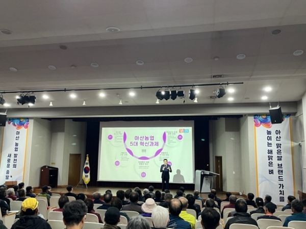 시는 장기적인 농업 비전 제시와 효율적인 농업 지원 정책 마련을 위해 △아산쌀 생산성 혁신 △농업기술센터 기술지도기능 강화 △재해 등 농업 분야 예산 사용 효율성 제고 △농협 로컬푸드 직매장 수수료율 인하 △학교급식 운영 전면 전환 등 아산시 농정분야 5대 혁신과제 추진을 시작했다.