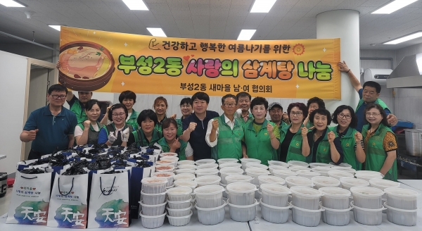 [충청뉴스큐] 천안시 부성2동 새마을남녀협의회가 지난 19일 행정복지센터에서 소외계층 및 어려운 이웃을 대상으로 사랑의 삼계탕 나눔행사를 가졌다.