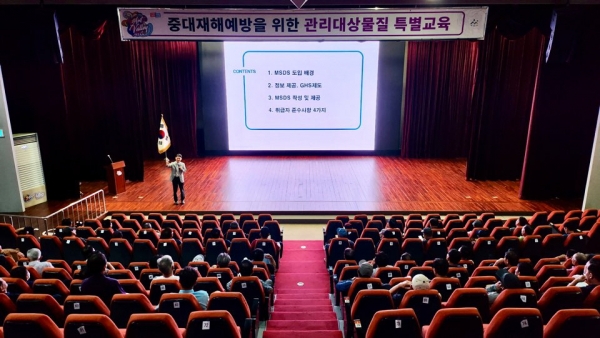 이번 교육은 중대재해 예방과 종사자 안전보건 역량 강화를 위해 마련됐으며 산업안전보건 교육기관 전문 강사가 △물질안전보건자료의 이해와 관리 △유해·위험 요인과 재해예방 대책 △화학물질 재해 사례 및 관리 요령 △작업환경 관리 △화학물질 위험성 평가 및 주요 사례 등을 주제로 참여자들에게 유익한 내용을 전했다.