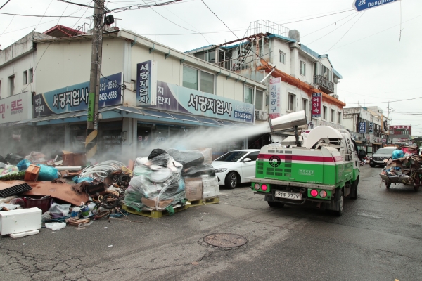 당진시 보건소 방역 담당자는 “이번 방역 및 소독 작업은 집중호우로 인해 침수 피해가 발생한 지역을 먼저 실시하며 시민들께서는 빗물이 고인 웅덩이와 화분 받침 등 고인 물을 제거할 것”을 당부했다.