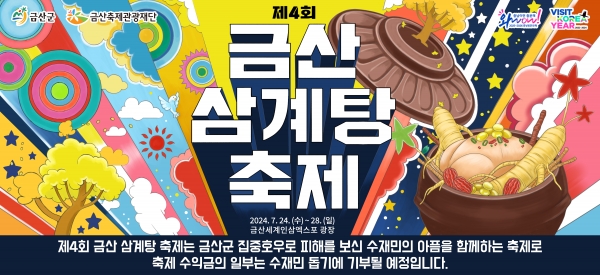 [충청뉴스큐] 제4회 금산 삼계탕축제가 24일부터 28일까지 5일간 금산세계인삼엑스포 광장에서 열린다.