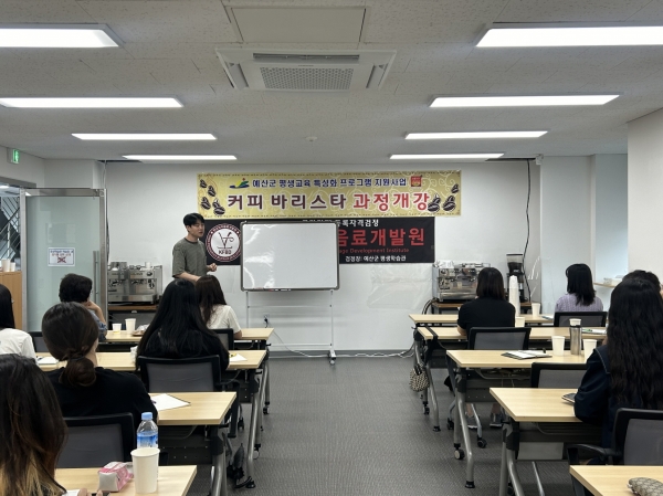 [충청뉴스큐] 예산군은 지난 22일 평생학습센터에서 커피 바리스타 2급 자격증반 교육을 개강했다고 밝혔다.