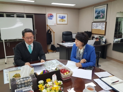 [충청뉴스큐] 경기도의회 경제과학기술위원회 원미정 의원이 지난 18일 독립유공자 생업지원을 위한 방안 마련을 촉구하고자 김희겸 경기도 1부지사와 면담을 가졌다.