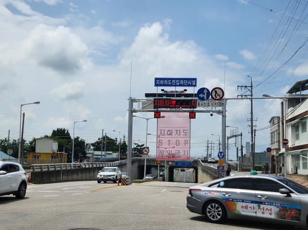 지하차도 진입 차단시설은 지하차도에 폐쇄회로TV, 차단기, 전광판, 수위계 등을 설치해 수위가 일정 수준에 도달하면 센서를 통해 자동으로 경보음이 울리고 차단막이 내려와 지하차도 진입을 막는 시설이다.
