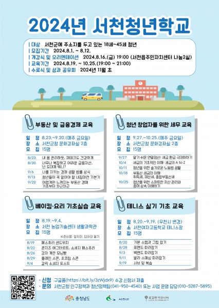 [충청뉴스큐] 서천군은 청년의 다양한 문화·여가 활동을 지원하고자 오는 12일까지 ‘청년학교’ 참여자를 모집한다.