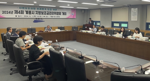 [충청뉴스큐] 계룡시는 지난 8월 1일 시청 상황실에서 2023회계연도 지방보조사업 성과평가 및 주요재정사업 사후평가 등 심의를 위해 ‘제4회 계룡시 지방보조금심의위원회’를 개최했다고 밝혔다.