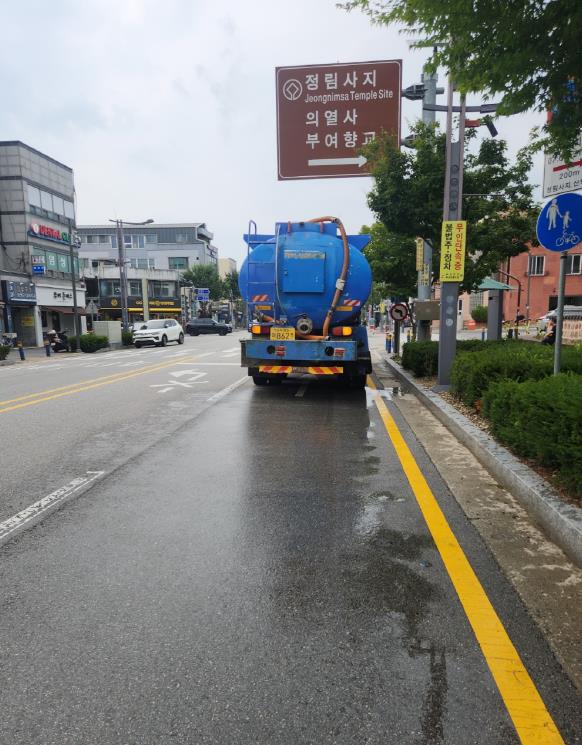 무더위가 극에 달했던 8월 초부터는 부여 관내 도로에 살수차를 동원해 열섬현상을 완화하고 있고 온열질환자 발생을 최소화하기 위해 그늘막, 양산대여소, 안개형 냉각수 분사, 햇빛 차단 지붕 등을 운영 중이다.