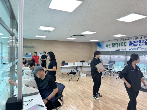[충청뉴스큐] 예산 1100년 기념관은 지난 8일 KSPO아산체력인증센터 전문 출장전담반 운동처방사들과 함께 국민체력100 체력인증센터를 운영했다고 밝혔다.