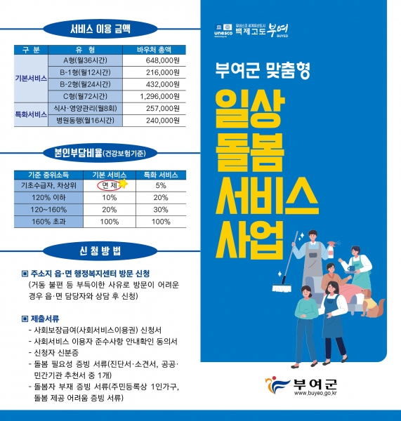 [충청뉴스큐] 부여군은 돌봄이 필요한 청·중장년과 가족을 돌보고 있는 청년을 대상으로 ‘일상돌봄서비스 사업’이용자를 모집한다.