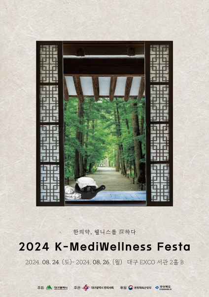 [충청뉴스큐] 대구광역시는 오는 8월 24일 ~ 26일 3일간, 대구광역시 한의사회 주관, 문화체육관광부와 경상북도 후원으로 대구 엑스코 서관 2홀 B에서 ‘한의약, 웰니스를 探하다’를 주제로 ‘2024 K-MediWellness Festa’를 개최한다.