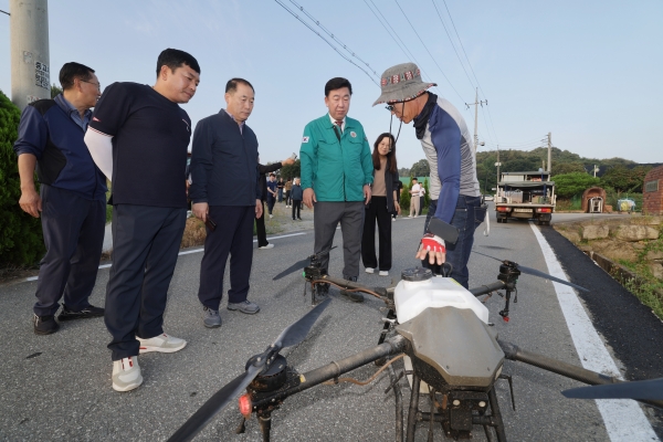 1천442ha 면적을 대상으로 공동방제로 사업비 7억3천700만원을 들여 고품질 생산자재를 광역살포기, 드론을 이용해 살포했다.