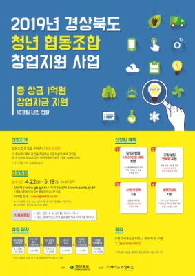 [충청뉴스큐] 경상북도는 청년들의 창의적이고 혁신적인 협동조합 비즈니스 모델을 발굴하고 협동조합 창업 모델에 대한 사업화 지원을 위해 내달 19일까지 청년 창업팀을 모집한다고 밝혔다.