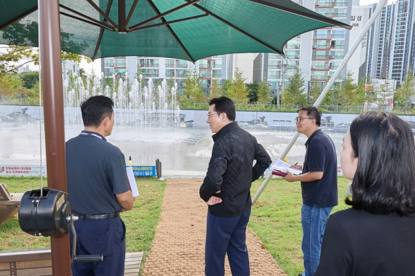 신정호 물놀이장에 이어 아산문화공원 아쿠아스테이지를 방문한 박 시장은 시설물 운영 상황 점검 및 민원 관련 사항을 확인하고 향후 운영계획을 보고받으며 이날 현장 점검을 마무리했다.
