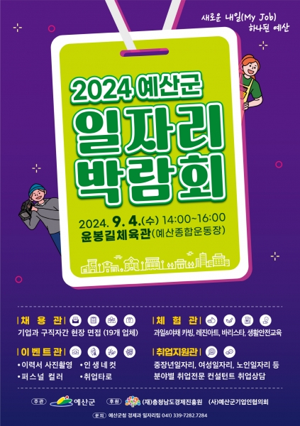 [충청뉴스큐] 예산군은 오는 9월 4일 오후 2시부터 윤봉길체육관에서 ‘2024년 예산군 일자리박람회’를 개최한다.