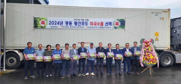선적식에는 강성규 영동부군수 및 농협 관계자, 황간수출작목회 임원 등이 참석해 수출확대를 기원했다.