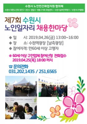 [충청뉴스큐] 수원시는 오는 26일 오후 1시부터 5시까지 수원역 남측광장에서 ‘제7회 노인일자리 채용 한마당’을 연다.