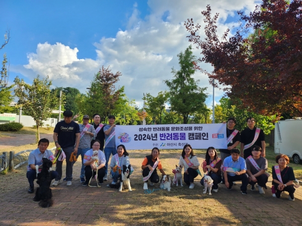 [충청뉴스큐] 아산시는 반려동물 양육 인구 1,500만명 시대에 맞는 성숙한 반려동물 문화 조성을 위해 둔포면 중앙공원 일대에서 반려동물 캠페인을 개최했다.