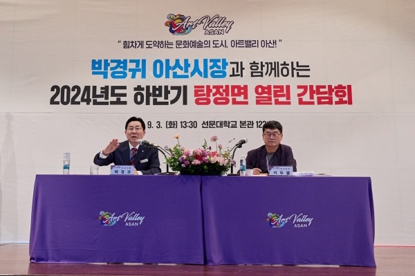 [충청뉴스큐] 박경귀 아산시장은 3일 선문대학교에서 ‘2024 하반기 탕정면 열린간담회’를 개최했다.