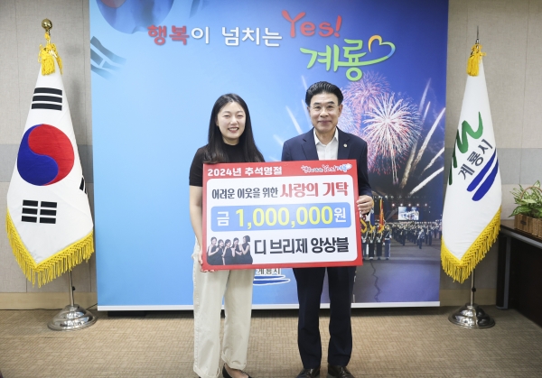 이날 기탁금은 지난 8월 17일 계룡문화예술의전당에서 개최된 디브리제 앙상블 제2회 정기연주회의 수익금으로 마련됐으며 관내 취약계층 지원에 사용될 예정이다.