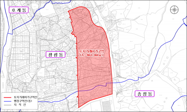 울산시는 오는 2024년 9월 10일부터 2027년 9월 9일까지 3년간 북구 창평동 일원 0.86㎢를 토지거래허가구역으로 지정키로 하고 9월 5일 공고했다고 밝혔다.