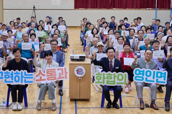 [충청뉴스큐] 박경귀 아산시장과 영인면 주민들의 2024 하반기 열린간담회가 5일 영인초등학교 강당에서 열렸다.
