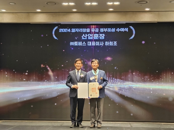 [충청뉴스큐] 장항국가산업단지 입주기업인 ㈜토비스는 지난 5일 대한상공회의소에서 열린 일자리 창출 유공 정부포상 수여식에서 일자리 창출 공로를 인정받아 ‘은탑산업훈장’을 수상하는 영예를 안았다.