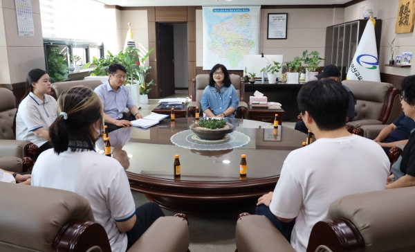 [충청뉴스큐] 아산교육지원청은 10일 오전, 추석 명절을 앞두고 미화, 당직, 사회복무요원, 희망 일자리 등 청사 관리에 애쓰는 직원들을 위한 격려 자리를 마련했다.
