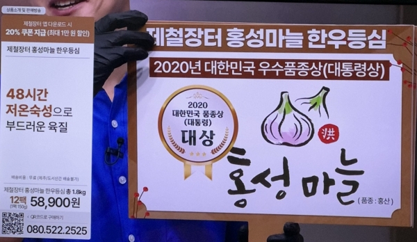 지난 6월 협약식을 갖고 홍성군과 LG헬로비전, 신선P&F가 공동으로 개발한 홍성마늘 한우등심구이가 8월 10일 론칭 후 한달 만인 9월 9일 약2억원의 판매고를 올리며 인기몰이를 하고 있다.