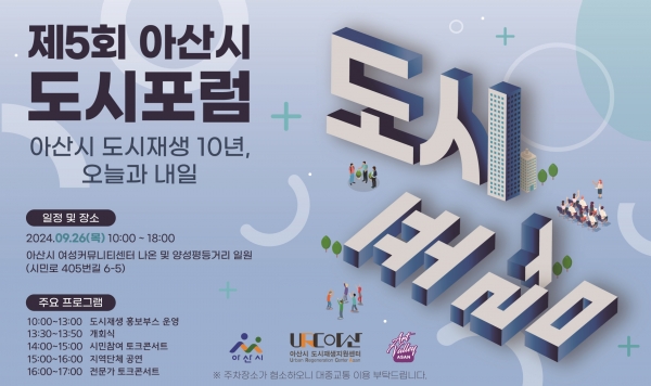 [충청뉴스큐] 아산시가 오는 26일 아산시 여성커뮤니티센터 나온에서 ‘2024년 제5회 아산시 도시포럼’을 개최한다.
