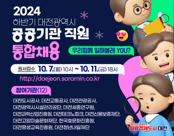 [충청뉴스큐] 대전시가 2024년 하반기 산하 공공기관 직원 통합채용을 추진한다.
