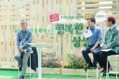 24일 권선구 국립산림과학원 야외무대에서 열린 ‘수원시민과 함께하는 행복한 상상 토크콘서트’에 패널로 나선 염태영 수원시장은 “도시숲은 시민의 쉼터이자, 다양한 가치가 만나는 곳”이라며 “시민들이 숲의 중요성을 공감할 수 있도록 노력하면서 도시숲을 조성해나가겠다”고 말했다.
