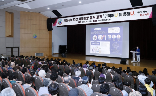 [충청뉴스큐] 대전 서구 치매안심센터는 20일 서구청 구봉산홀에서 ‘2024년 치매극복 주간’을 맞아 치매 예방을 위한 공개강좌 ‘기억해U 예방해U’를 진행했다.