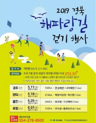경상북도는 문화체육관광부와 공동으로 ‘봄맞이 경북 해파랑길 걷기 행사’를 갖기로 하고 길여행 애호가와 일반 관광객을 선착순 모집한다.