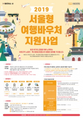 [충청뉴스큐] 서울시는 비정규직 노동자와 특수형태근로종사자 2천명에게 휴가비 일부를 지원하는 ‘2019 서울형 여행 바우처 지원 사업’의 참가자를 모집한다. 모집기간은 오는 5월 16일부터 6월 7일까지이며, 홈페이지를 통해 온라인 접수를 하면 된다.