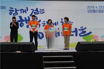 대회에 참석한 사회복지종사자들이 1시간 넘게 걸리는 4킬로미터 구간을 걷는 행사가 시작하기에 앞서서 “월드컵공원을 걸으며 그동안의 피로와 스트레스를 날려 버리시길 바라고, 여러분이 행복하고 건강해야 시민이 행복하고 건강해진다.”라고 사회복지종사자의 건강과 소진 관리의 중요성을 강조하며, 행복하고 즐거운 하루를 기원드렸다.