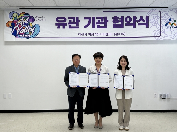 [충청뉴스큐] 아산시 여성커뮤니티센터 ‘나온’은 지난 23일 여성 취·창업 지원을 위해 아산시육아종합지원센터, 아산여성새로일하기센터와 업무협약을 체결했다.