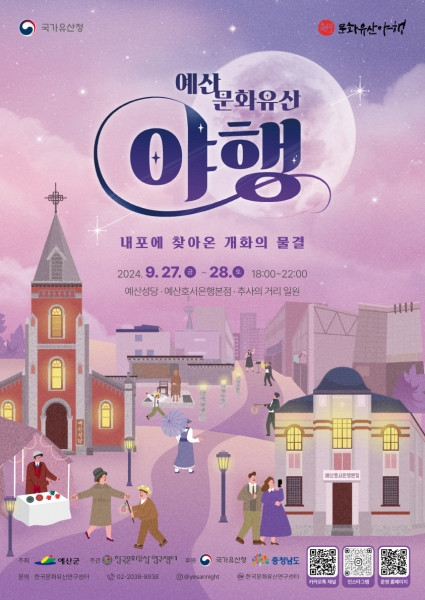 [충청뉴스큐] 예산군은 올해로 2회를 맞이하는 ‘예산 문화유산 야행’ 이 오는 27일부터 28일 2일간 오후 6시부터 22시까지 예산읍 예산리 일원에서 개최된다고 밝혔다.