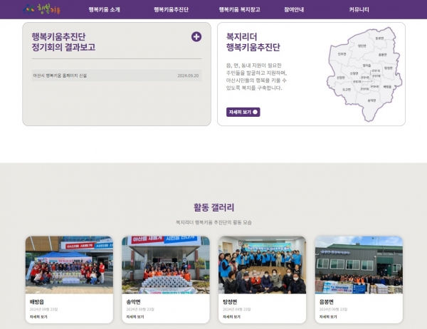 [충청뉴스큐] 아산시가 읍면동 행복키움추진단 운영 활성화와 행복키움 지역복지사업 서비스 접근성을 높이기 위해 ‘아산시 행복키움 홈페이지’를 오픈했다.