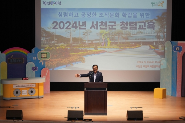 [충청뉴스큐] 서천군은 지난 25일 기벌포 복합문화센터에서 김기웅 군수를 비롯해 군 소속 공무원 260여명, 국립생태원 임직원 20여명 등이 참석한 가운데 청렴하고 공정한 조직문화 확립을 위한 ‘공직자 청렴교육’을 실시했다.
