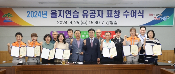 [충청뉴스큐] 계룡시는 지난 25일 시청 상황실에서 ‘2024년 을지연습’을 성공적으로 마무리하고 비상 대비 태세 확립에 기여한 유공자에게 표창을 수여했다고 전했다.